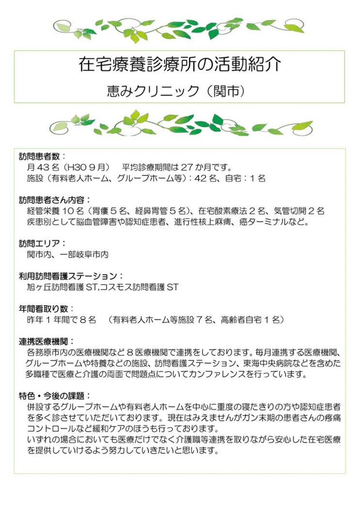 在宅療養診療所活動 恵みクリニック