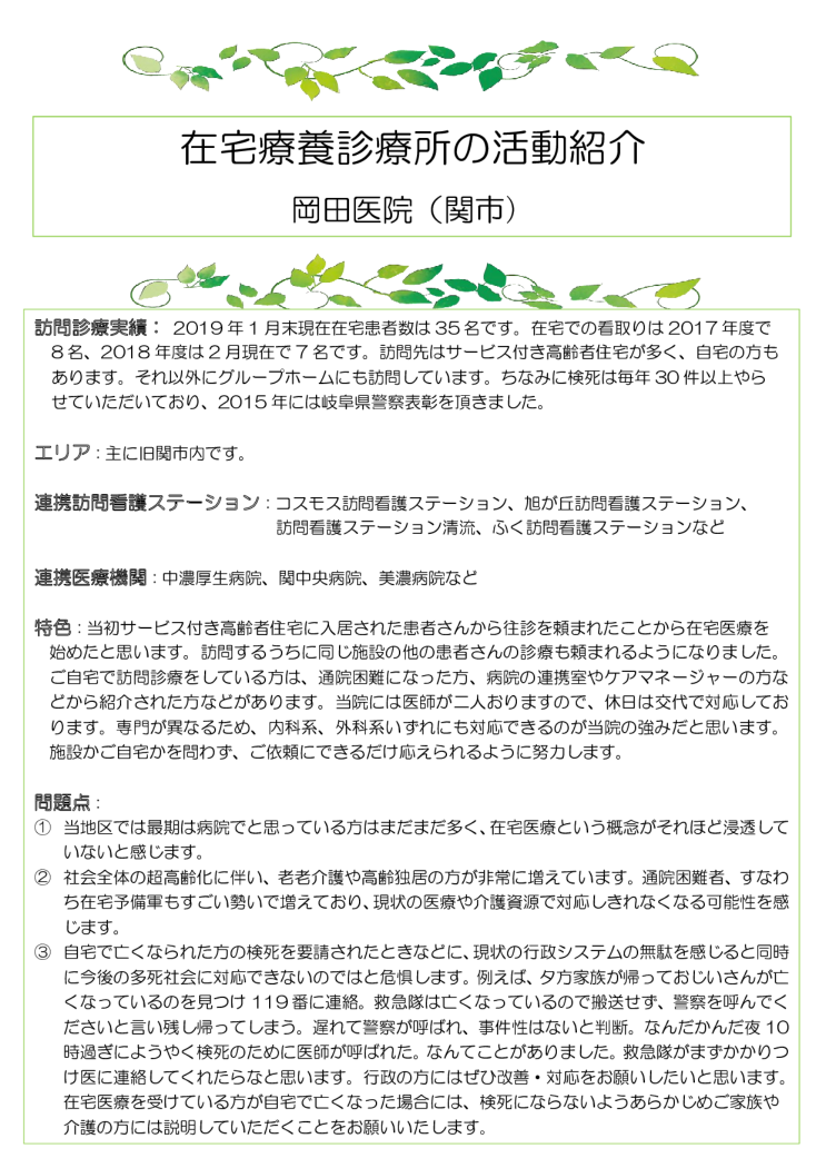 在宅療養診療所活動 関市 岡田医院