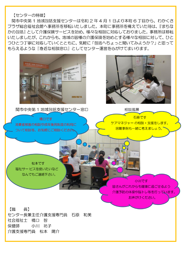 関市中央第1地域 地域包括センターの紹介